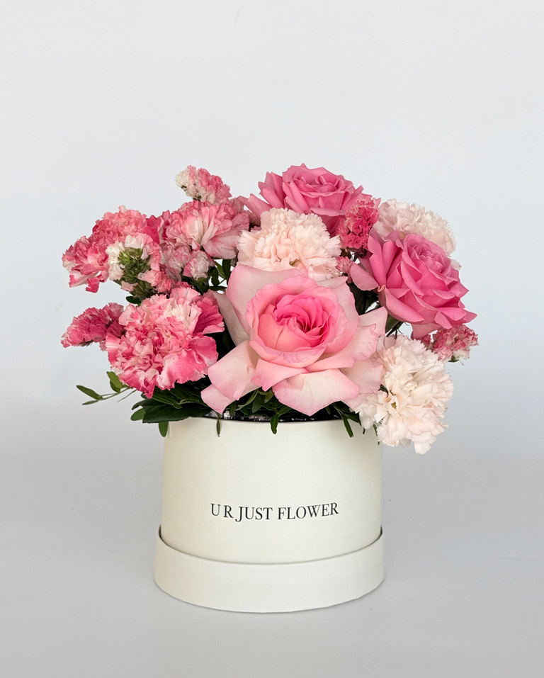 A delicate arrangement of soft pink roses paired with charming carnations, creating a sweet and elegant composition. Designed with a gentle balance of textures and tones, this piece is perfect for expressing love, appreciation, and warm emotions.