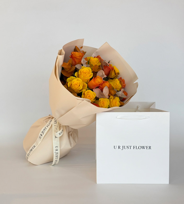A vibrant and cheerful bouquet featuring radiant yellow and warm orange roses, beautifully arranged to bring light, positivity, and joyful energy to any space. Its bright tones make it a perfect choice for uplifting moments and heartfelt gestures.
